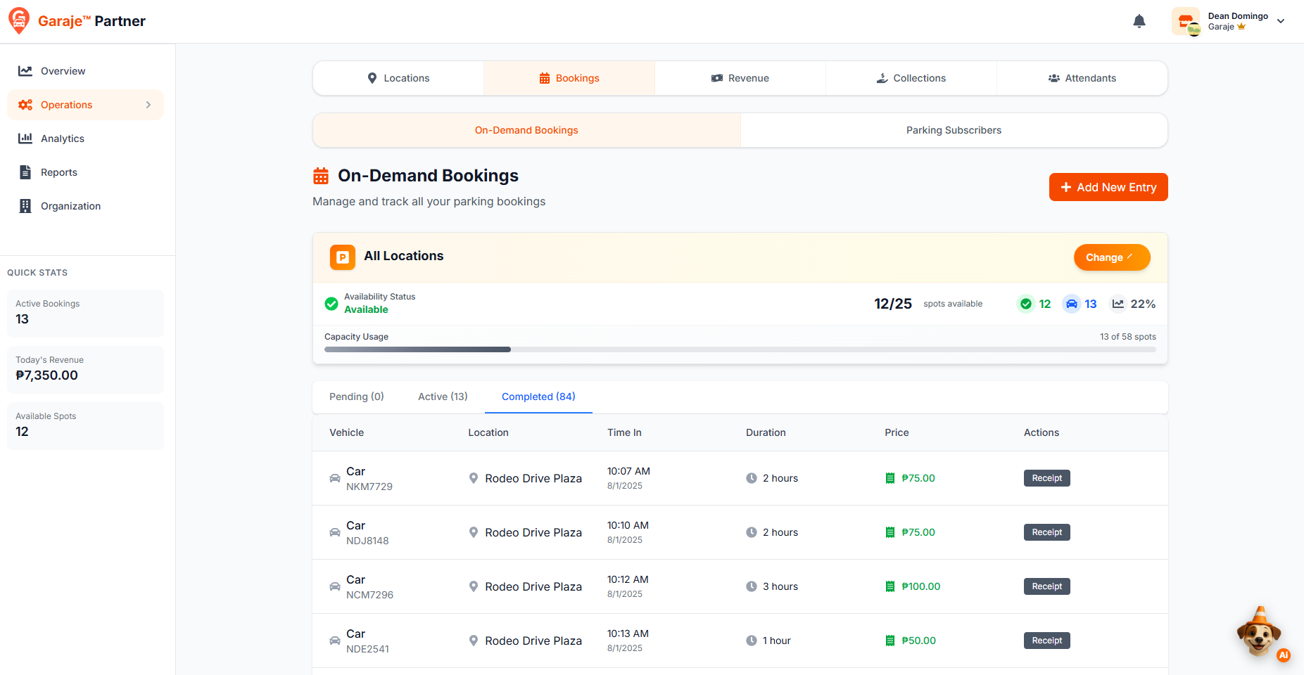 The full-day operational test at Rodeo Drive Plaza demonstrated Garaje's ability to streamline parking operations while generating significant revenue potential. The software performed flawlessly throughout the 8-hour test period, logging 84 vehicles with zero technical issues.